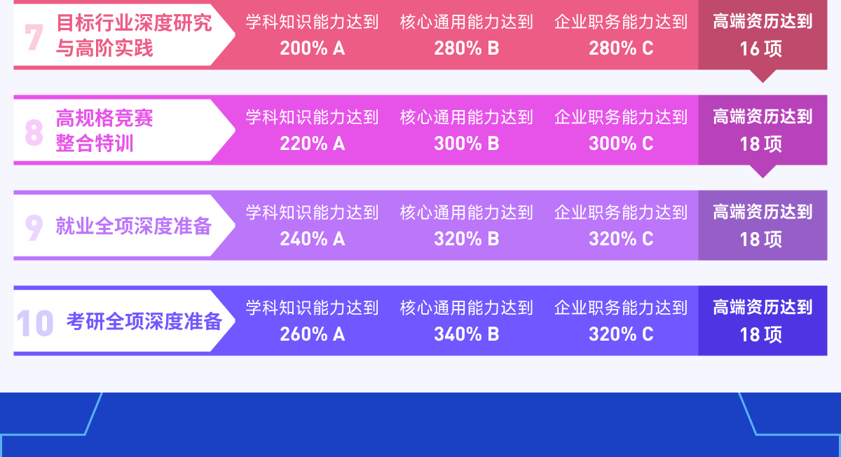 关于大学生提升高端能力的原理与模式,我们深度研究了超过30万名以普通或劣势背景,实现优异职业发展和超过10000名包括华为天才少年等实现卓越发展的大学生群体之后,发现他们无一例外都是在大学期间投入了足量时间参加了特定高价值活动,锤炼出了均衡优异的高端能力与资历结构